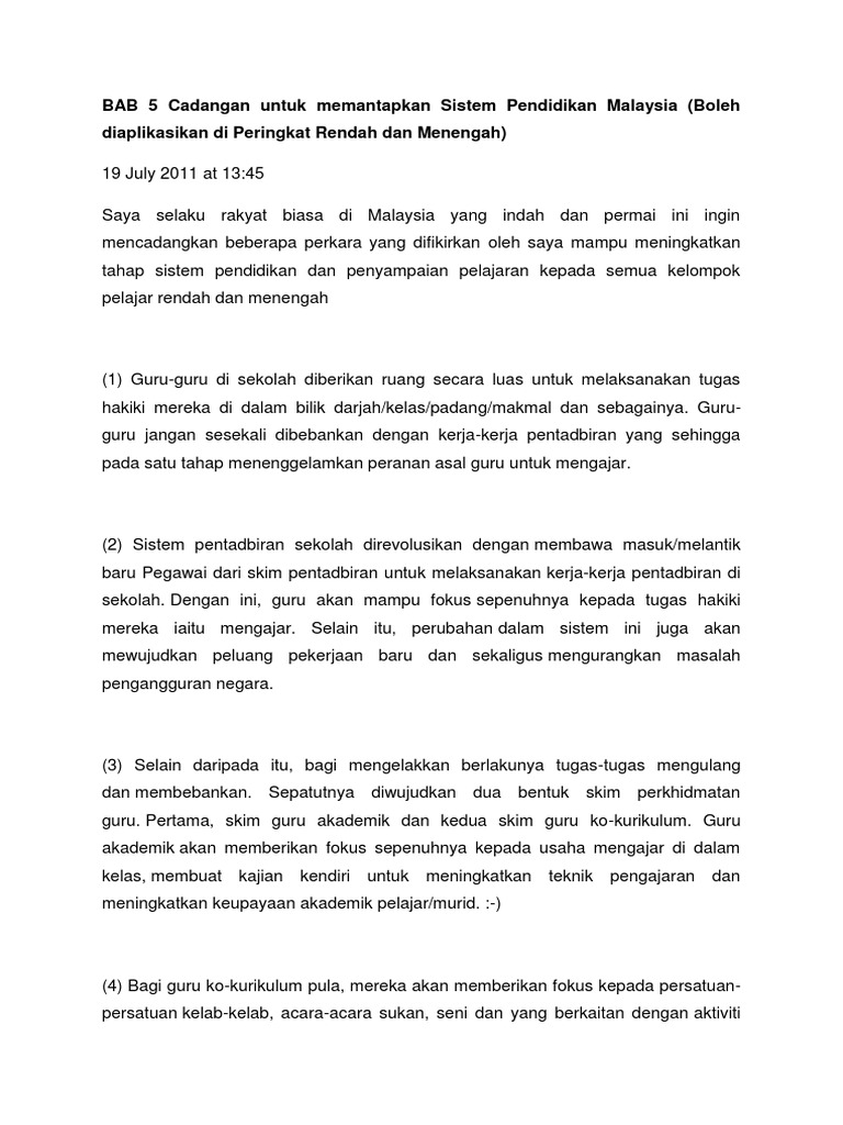 Bab 5 Cadangan Untuk Memantapkan Sistem Pendidikan Malaysia Pdf